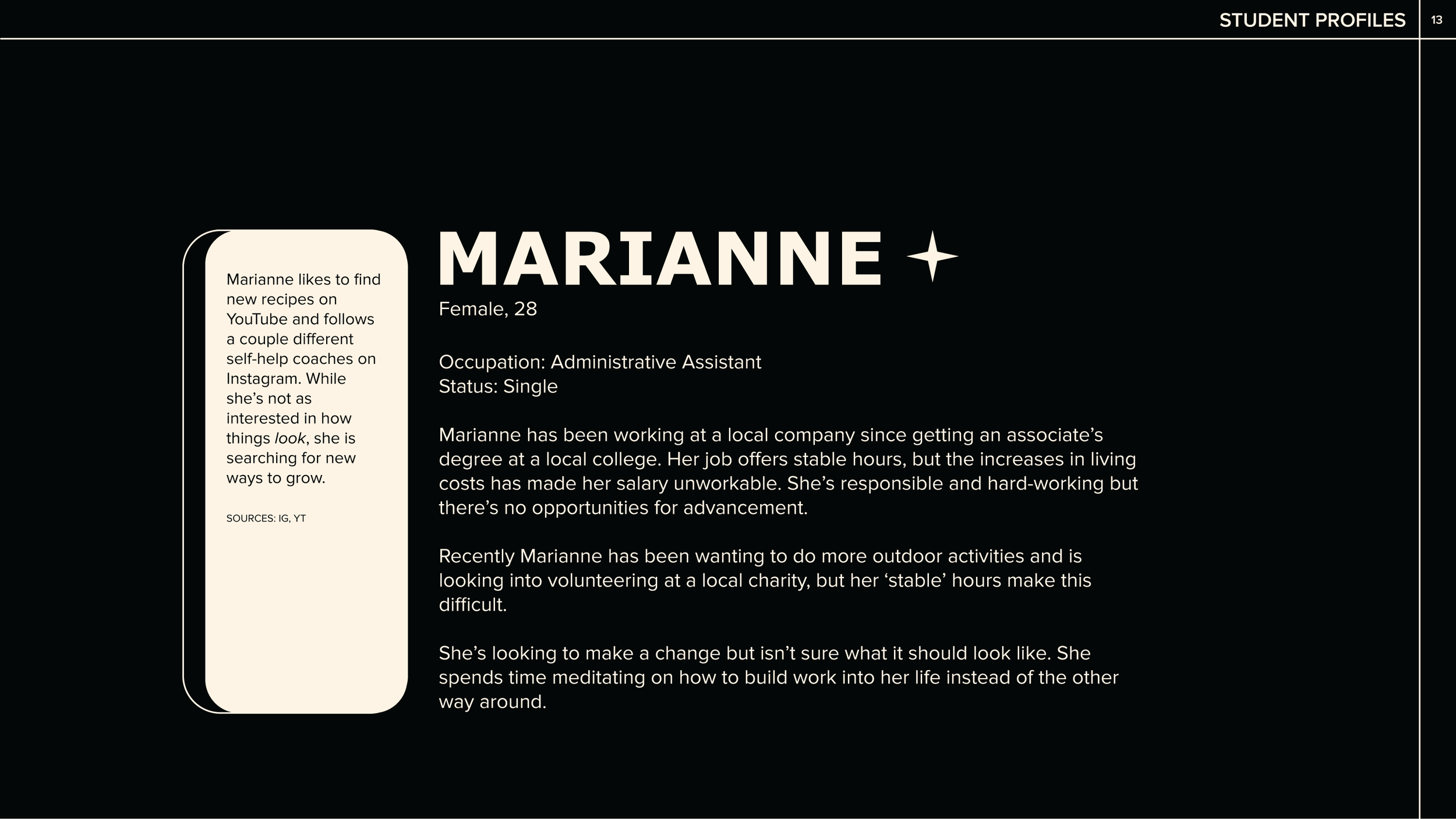 We developed two User Personas for H2H to assist in focusing and fine-tuning the school’s future marketing efforts.